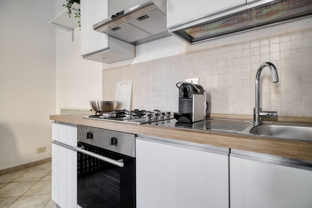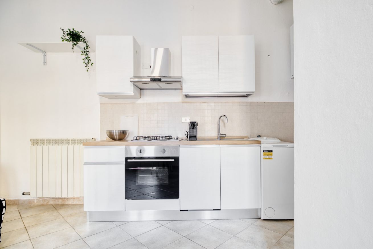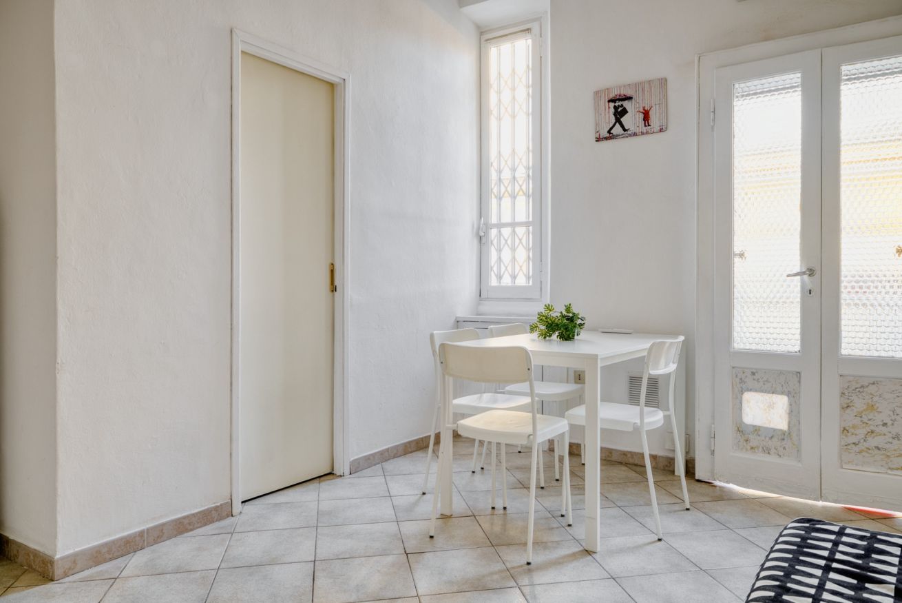 L'appartamento, composto da camera da letto, salotto con divano letto e cucina e bagno con box doccia può ospitare da 1 a 4 persone ed è sito al secondo piano di una tipica casa di corte Meneghina.