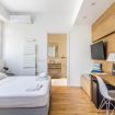 Questo appartamento con aria condizionata comprende 1 camera da letto, una cucina con lavastoviglie e microonde, e 1 bagno.